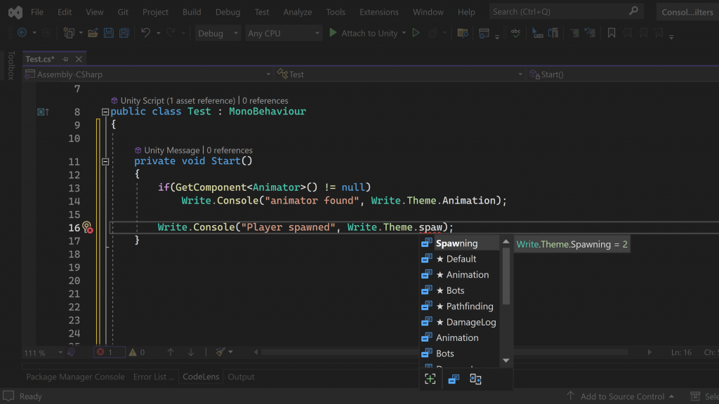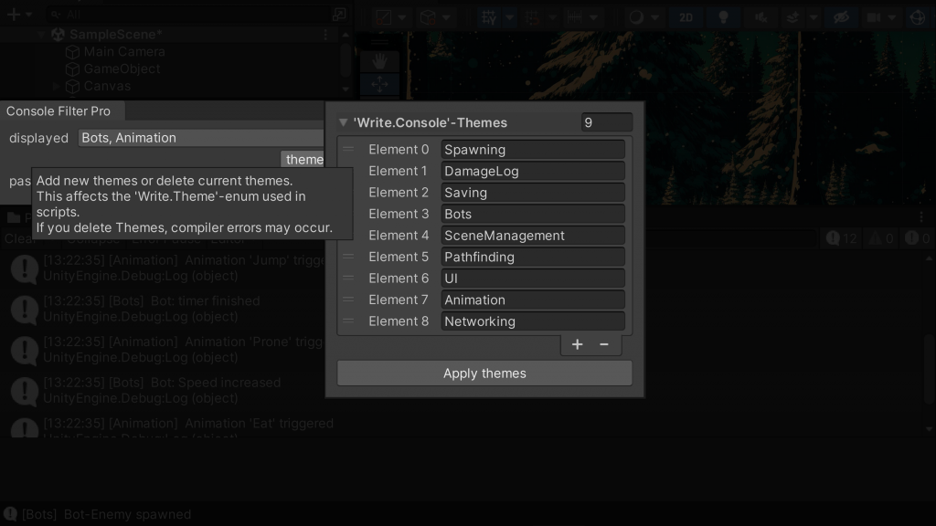 Add, Edit and Delete the themes Enum from within the Unity Editor.